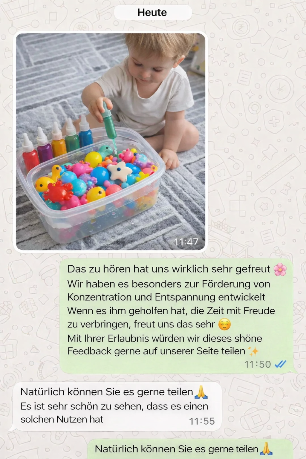 Ein pädagogisches Wasserspielset, mit dem Kinder Schritt für Schritt ihre eigenen Spielzeuge aus bunten Gelen herstellen können.