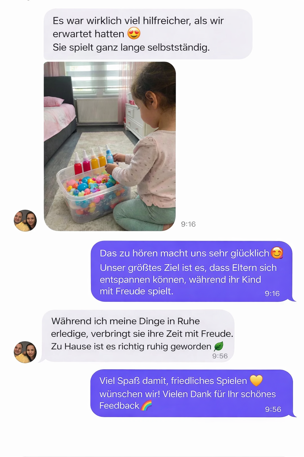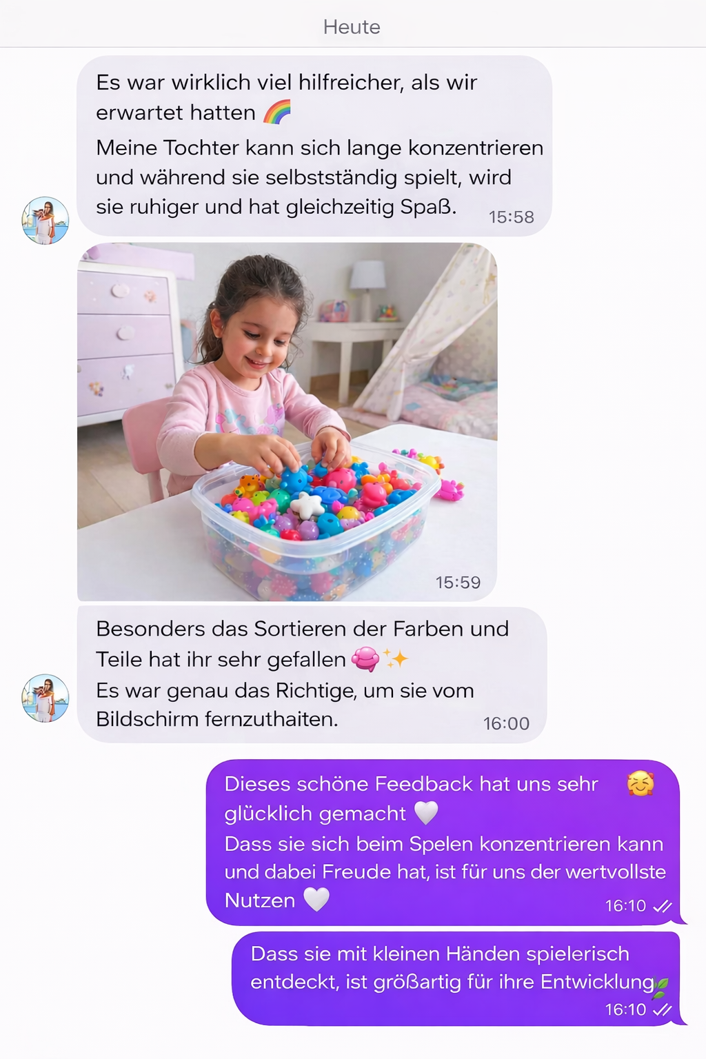 Viel mehr als nur ein gewöhnliches Spielzeug! 💜 Mit seinen lebendigen Farben und niedlichen Figuren unterstützt es die sensorische Entwicklung von Kindern sowie die Hand Augen Koordination und die Fantasie. Dank der sicheren Konstruktion und des unterhaltsamen Inhalts bietet es sowohl für Kinder als auch für Eltern ein angenehmes und lehrreiches Spielerlebnis ✨
